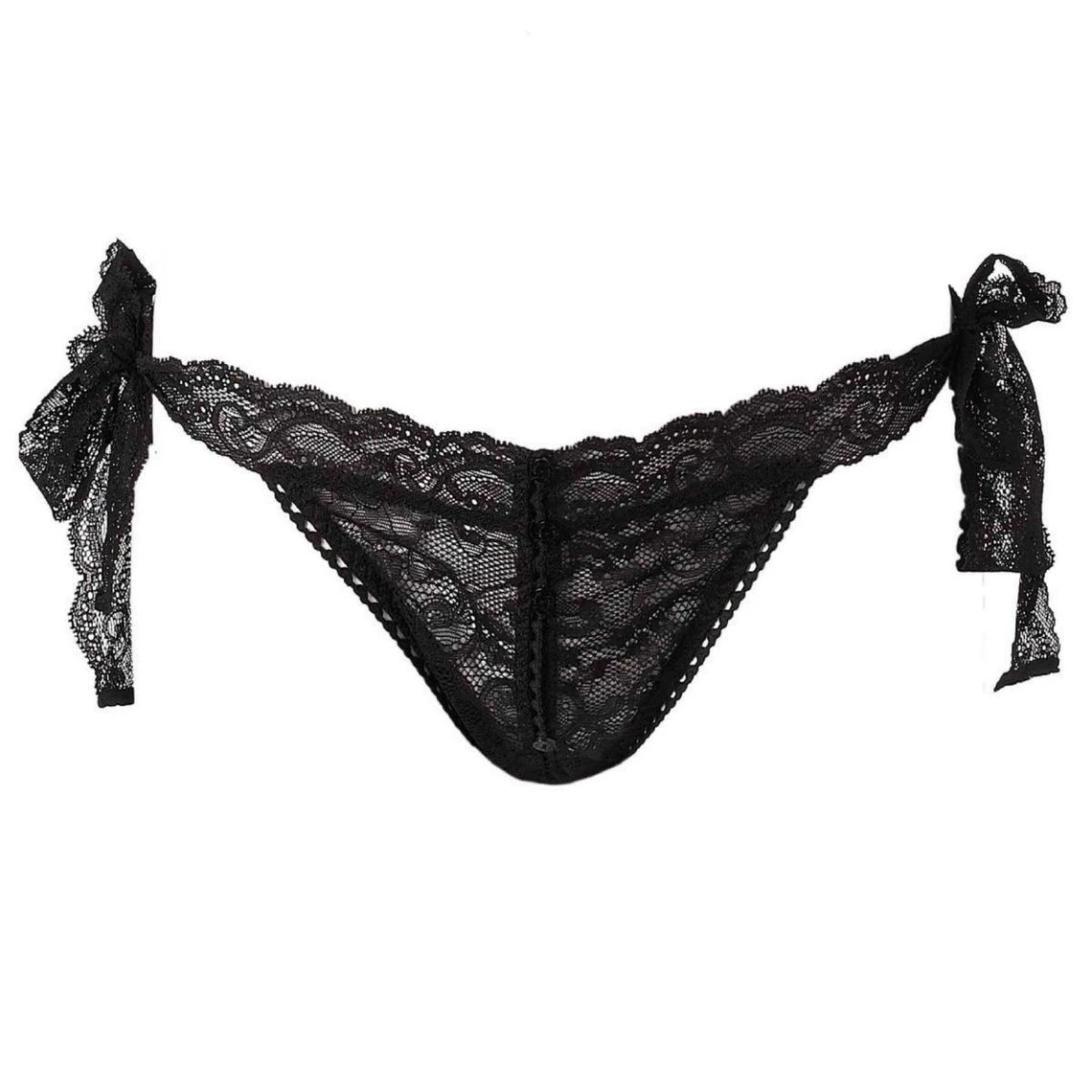 Culotte toute en dentelle. Les motifs de la dentelle ressortent magnifiquement sur la peau. La culotte se ferme et s’ouvre au dos. Ouverture au choix en déboutonnant le nombre de boutons que vous souhaitez. Ceux-ci se glissent dans des petits picots en forme de coeur. La culotte s’ajuste sur les côtés grèce à des bandes de dentelle qui se nouent sur mesure. Cette culotte se porte parfaitement avec le soutien-gorge triangle open-up qui s’ouvre et se referme selon vos envies. Craquez pour cet ensemble soutien-gorge triangle/culotte à l’allure classique mais qui évolue et se module au gré de vos désirs !