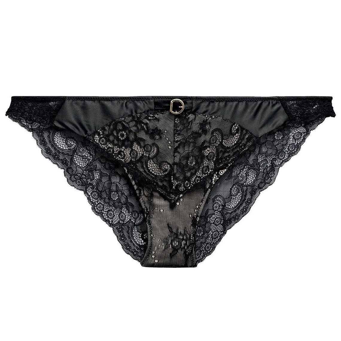 Dentelle : 85% polyamide, 15% élasthanne – Matière secondaire : 92% polyamide, 18% élasthanne – Doublure panneau avant : 90% polyamide, 10% élasthanne – Doublure fond de slip : 100% coton.