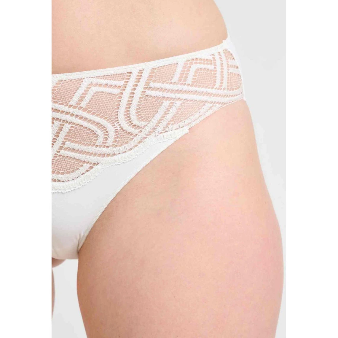 Enrichie d’une dentelle graphique et d’une maille d’une exceptionnelle douceur, cette culotte s’impose en véritable indispensable de votre collection de lingerie à sortir pour les beaux jours. Légèrement échancré au niveau des fesses, elle dévoile vos courbes avec charme. Son fin tour de taille élastiqué assure une excellente tenue tandis que l’arrière promet une meilleure opacité.