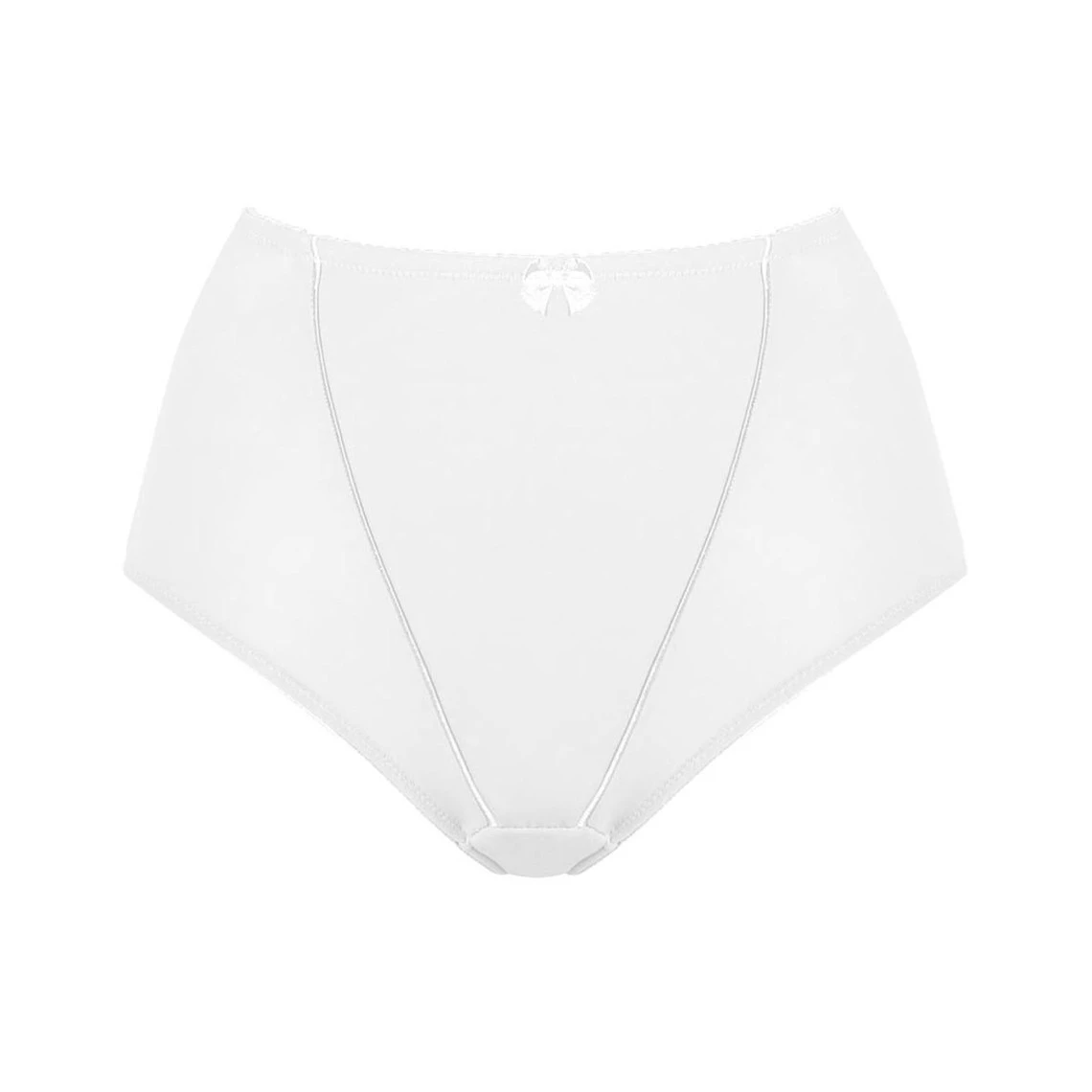 Confortable et gainant, cette culotte haute blanche vous apporte l’effet ventre plat que vous recherchez ! Toute blanche, cette culotte haute est composée de trois couches sur le devant avec la microfibre, le coton et le tulle gainant à l’intérieur pour l’effet ventre plat, deux élastiques soyeux à l’ouverture des cuisses et sur le devant, doublure fond de slip 100 % coton.