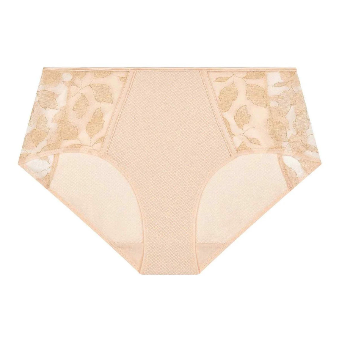 Son avant se compose d’un tulle fantaisie doublé d’un coton pour garantir opacité et confort. Ses deux côtés sont en tulle brodé, révélant les courbes avec sensualité. Enveloppante, sa coupe lui permet de cacher efficacement les petites imperfections et offre un effet ventre plat réussi. En tulle graphique, son dos reste couvrant et forme un fessier naturellement galbé. Doublé d’un gousset 100% coton, son fond promet une hygiène accrue.