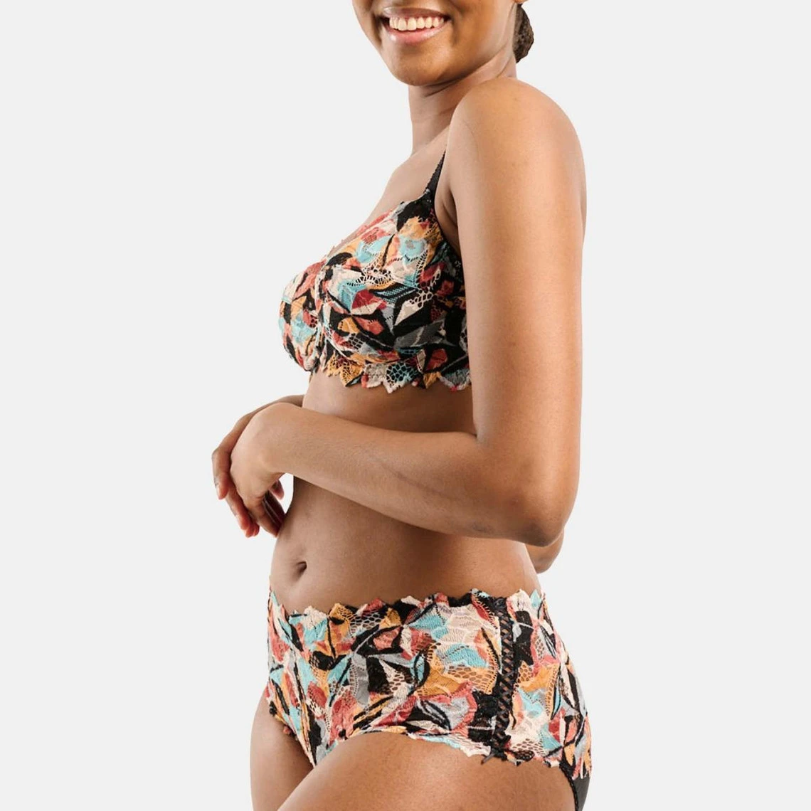 Adoptez un look coloré et chic avec cette Culotte taille medium noire de la collection Arum Mosaic de Sans Complexe.