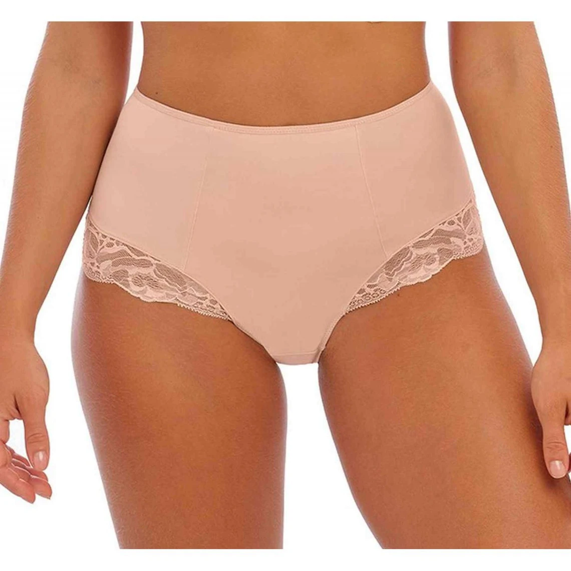 Adoptez une allure chic et élégante avec cette Culotte taille haute en maille opaque et bordure en dentelle – Natural Beige de la marque Fantasie pensée par la collection Reflect.