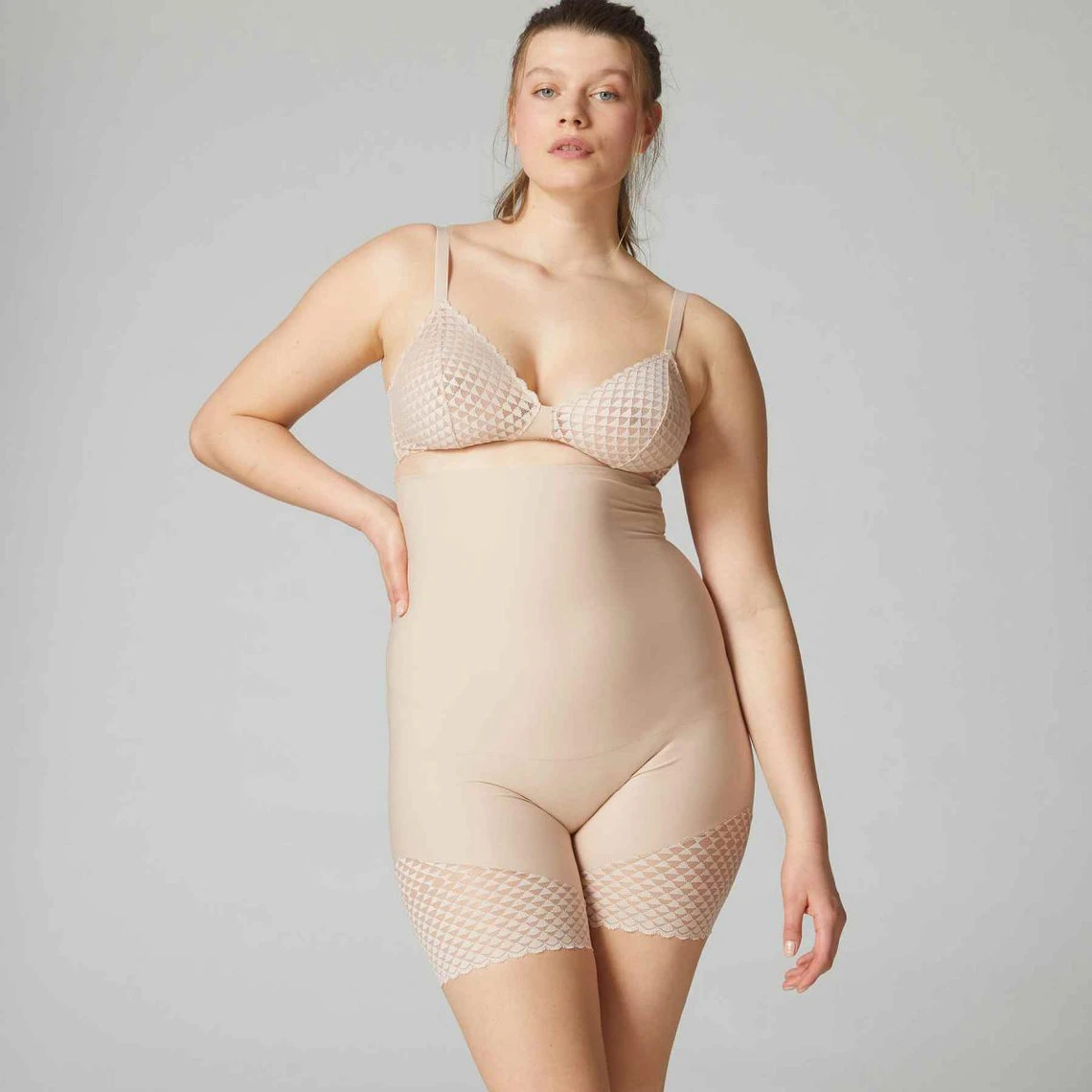 Avec sa forme panty, ce dessous cible particulièrement le ventre, la taille et les cuisses pour une silhouette de rêve. La maille nerveuse enveloppe en douceur les lignes du corps pour une taille de guêpe et un ventre plat. On adore la dentelle qui borde les cuisses. Elle ajoute une touche de modernité à ce dessous. La ceinture en silicone promet une tenue parfaite.