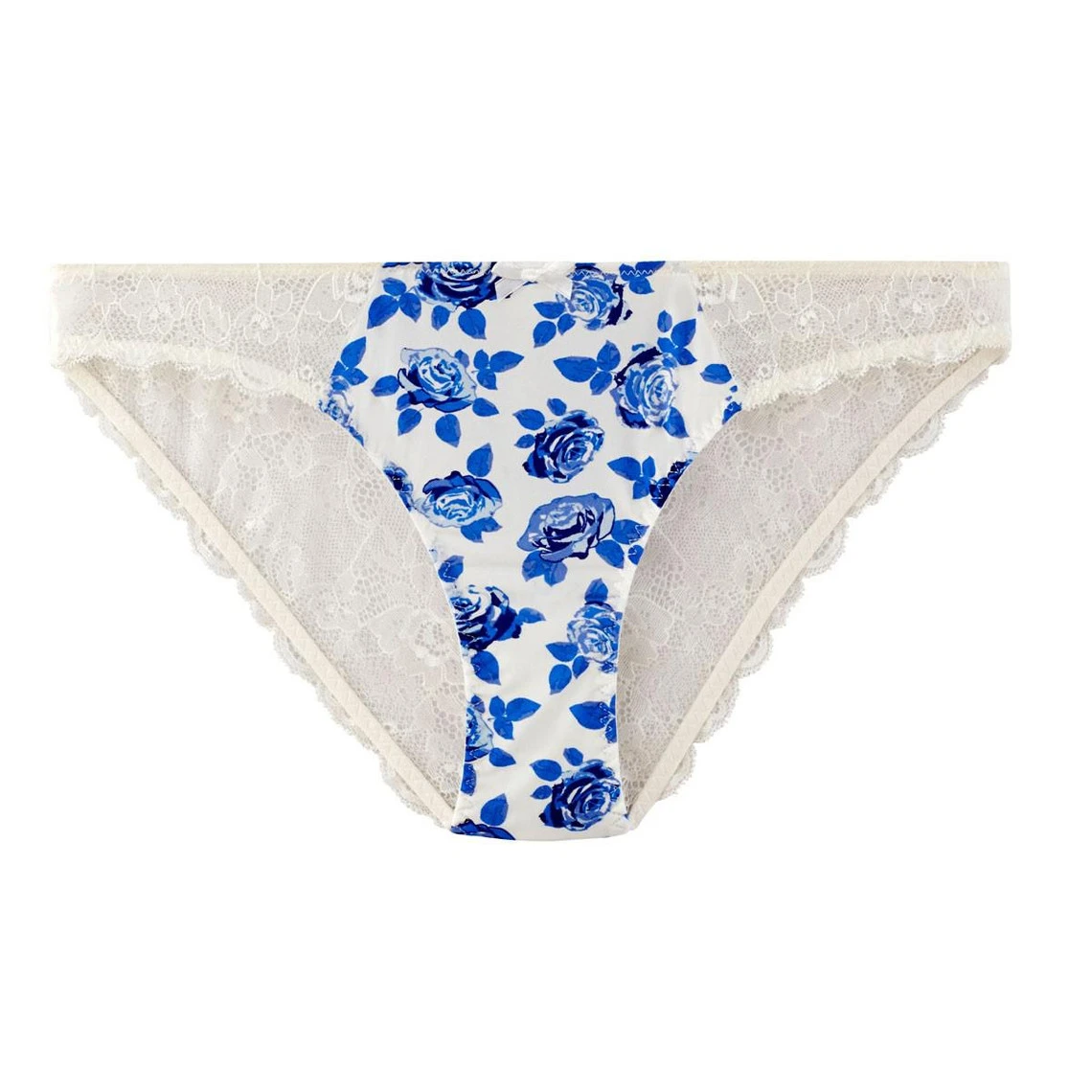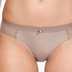 Slip en microfibre imprimée avec empiècement de dentelle sur les côtés. Nœud satiné à la ceinture. Dos en tout dentelle. Fond doublé 100% coton. Disponible du 38/40 au 46/48Dentelle: 90% polyamide 10% elasthanne Matière principale: 90% polyamide 10% elasthanne Fond de slip: 100% coton