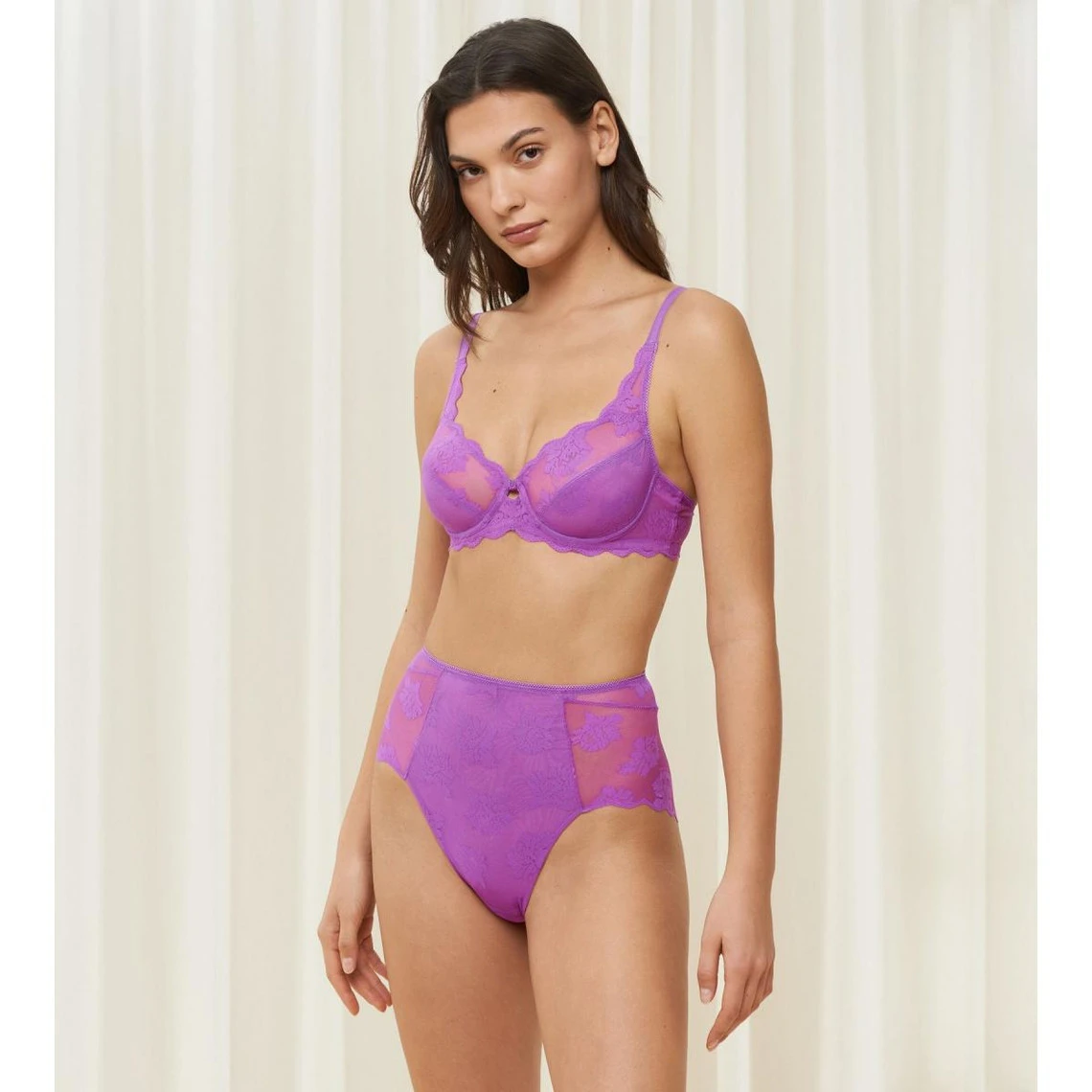 On adore le jeu de transparence et la sensualité de ce Panty Taille Haute Violet de la marque Triumph.
